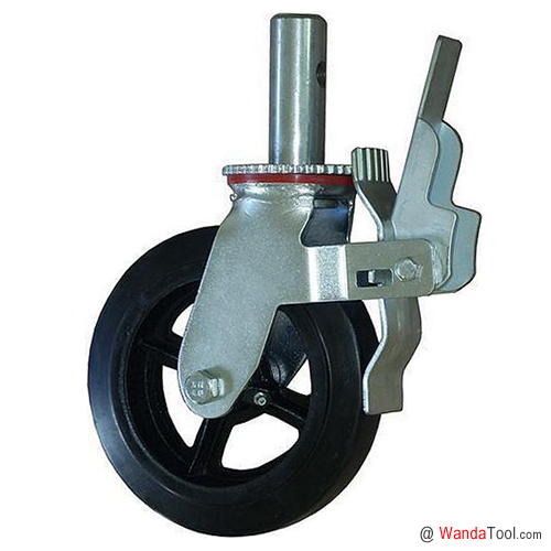SCAFD系列腳手架腳輪,采用桿徑38mm,長100mm的實心圓桿裝配。根據(jù)所配套輪子材質(zhì)的不同,單個腳輪設計載荷從200 公斤*500 公斤不等,主要應用于腳手架系列產(chǎn)品。這款腳手架腳輪上珠盤采用齒狀的剎車設計,配套于腳手架安裝使用時,可以同時牢靠的鎖定輪子和支架的轉(zhuǎn)動,有效保證了腳手架使用時的安全。